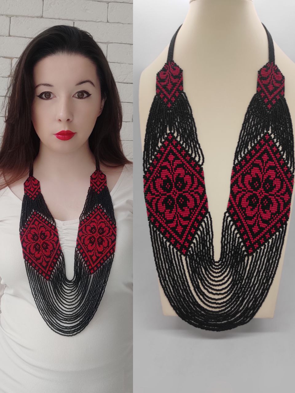 Чорно-червоний гердан ′Мокоша′ з квітковим орнаментом